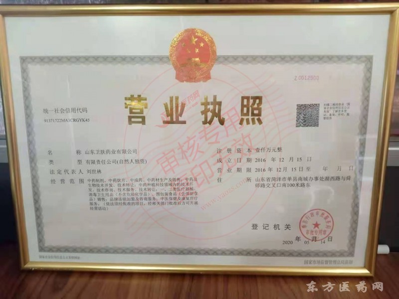 山東衛(wèi)膚藥業(yè)有限公司成立于2016年,位于山東省菏澤市單縣,是一家消毒衛(wèi)生用品及一/二類醫(yī)療器械生產(chǎn),銷售于一體的民營企業(yè)。公司注冊資金1000萬,占地100畝,擁有標準化無塵車間4000平方米,先進的大中型設(shè)備20余套及完善的配套設(shè)施?,F(xiàn)公司已與全國500多家醫(yī)療機構(gòu)、診所、藥店建立了良好的合作伙伴關(guān)系,有著良好的市場聲譽。成立于初衷是為傳承中醫(yī)藥文化,成就健康和諧,立志成為中醫(yī)藥文化的優(yōu)秀傳承者,創(chuàng)始人劉世林繼承祖上五代積累的經(jīng)驗與藥方結(jié)合現(xiàn)代醫(yī)藥提取技術(shù)。謹記習(xí)主席殷切期望不忘初心牢記使命普惠醫(yī)患。為中國人民的健康皮膚奮斗終生。