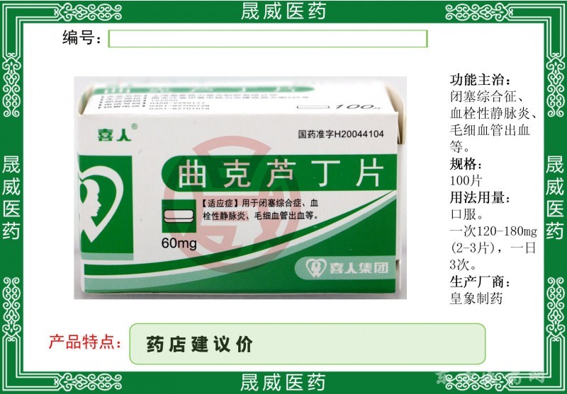 最新曲克蘆丁片招商