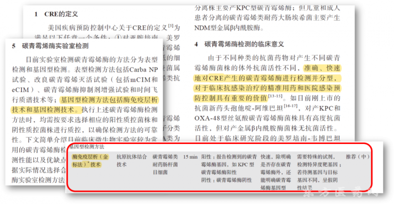 目前實驗室檢測碳青霉烯的方法分為表現(xiàn)檢測和基因型檢測,基因型檢測包括酶免疫分析技術(shù)和基因檢測技術(shù)。