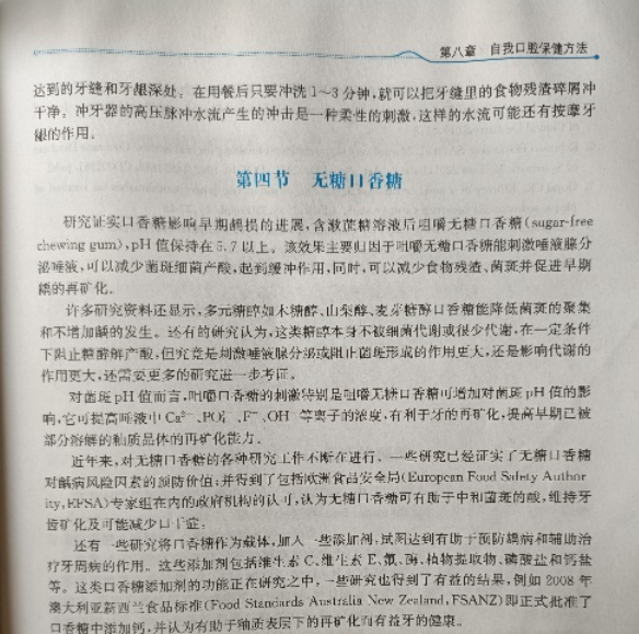 在《齲病預(yù)防和管理執(zhí)行概要白皮書——疾病預(yù)防控制現(xiàn)狀及關(guān)鍵措施概要》里,也建議將咀嚼無糖口香糖作為齲齒預(yù)防的策略之一。在口腔醫(yī)學(xué)教材中,也早明明白白地標(biāo)識了無糖口香糖的防齲功效。