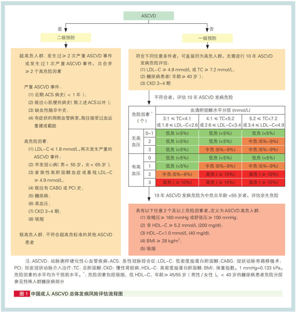 表1:中國成人 ASCVD 總體發(fā)病風(fēng)險(xiǎn)評(píng)估流程圖[1]