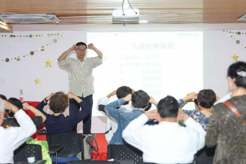 在專家講座環(huán)節(jié),來自上海曙光中醫(yī)藥研究發(fā)展基金會的余安勝教授分享了從頭動到腳的中醫(yī)保健知識。余安勝教授從工作、情緒、生活態(tài)度、積極動腦等方面,詳細(xì)講述了老年人該如何保健,并教授了健腦操、推拿手法,鼓勵老人們適當(dāng)運(yùn)動,釋放生長激素,保障健康,延長生命。講座結(jié)束后,在場老人及家屬制作香囊,品糕飲菊,共享溫馨時(shí)光。