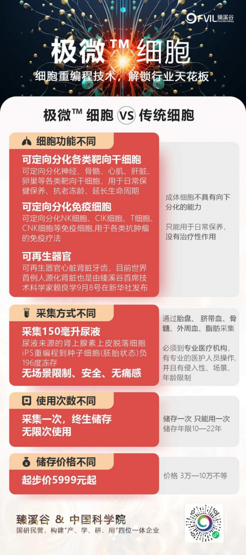 隨著國民健康意識日益增強,越來越多的人了解到細胞凍存的重要性,但傳統(tǒng)項目存在太痛、太貴、太坑的難點,常常令普通人望而卻步。中國在該領(lǐng)域起步較晚,但發(fā)展迅速,目前已處于世界領(lǐng)先水平,已經(jīng)涌現(xiàn)出一批相關(guān)領(lǐng)域優(yōu)秀企業(yè)或研究項目。以臻溪谷為例,其研發(fā)的極微?細胞(即尿源iPS細胞)項目,完美解決了痛點,將這一原本遠離普通人的項目,以更親民的價格,更便捷的流程,更科學(xué)的凍存技術(shù)進入尋常百姓家。