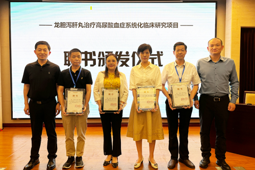 會(huì)上,進(jìn)行了龍膽瀉肝丸治療高尿酸血癥系統(tǒng)化臨床研究項(xiàng)目聘書頒發(fā)儀式,燕樹勛教授、馬云總經(jīng)理為受聘專家頒發(fā)證書。
