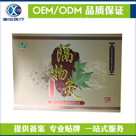 隔物灸代理定制 貼膏oem代加工。隔物灸臨床應(yīng)用已有很久的歷史。比較典型的有“煉臍”或者“蒸臍”。相傳為彭祖所發(fā)明。古代的隔物灸系是將名貴中藥材研末,置于肚臍或者相關(guān)穴位上,四周以面粉團(tuán)圍住,以防泄氣,將穿有小孔的槐樹皮或者生姜片置于其上,再將棗核大小的艾柱9-12壯置于槐樹皮或者生姜片上,點(diǎn)燃施灸。