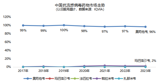 根據(jù)IQVIA數(shù)據(jù)顯示,2023年全球抗流感藥物市場中,奧司他韋的使用量占比超過九成,在中國市場更是達(dá)到96%。