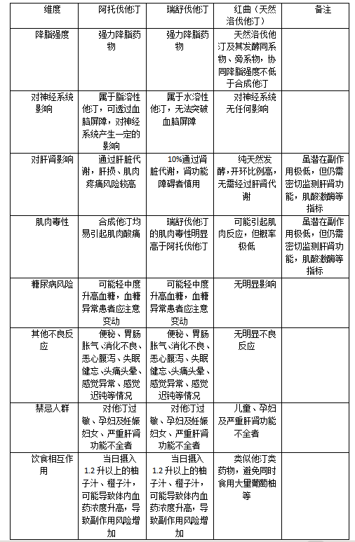 降脂強(qiáng)度、不良反應(yīng)與禁忌人群對(duì)比