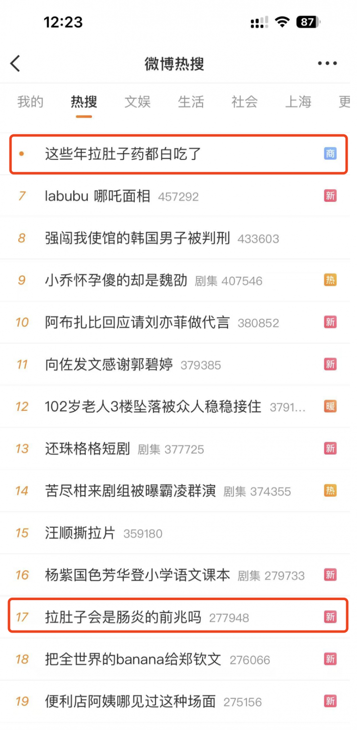 在腸道日當(dāng)日,眾多消費者也紛紛討論,當(dāng)天詞條“這些年拉肚子藥都白吃了”沖上微博熱搜榜單,眾多網(wǎng)友吐槽之前的有些藥確實能止瀉,但不消腸炎,更是用藥后便秘的經(jīng)歷。此次事件不僅引發(fā)了公眾對腸道用藥的反思,更推動了行業(yè)對“止瀉+消腸炎”雙效機制的關(guān)注。
