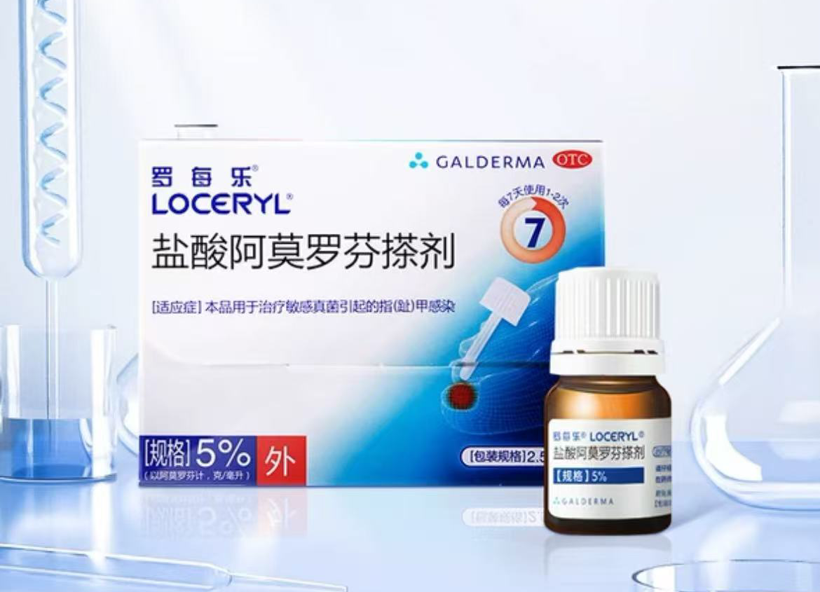 羅每樂搽劑劑含5%鹽酸阿莫羅芬針對(duì)灰指甲問題,每周僅需使用1-2次,能有效穿透甲板直達(dá)感染源。