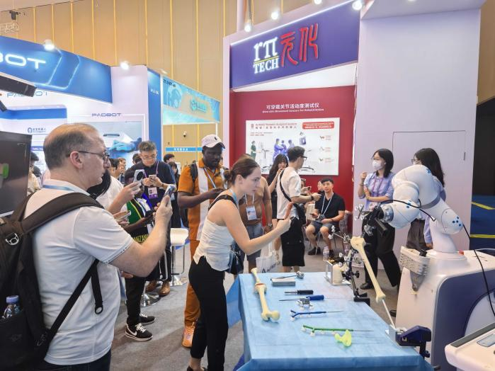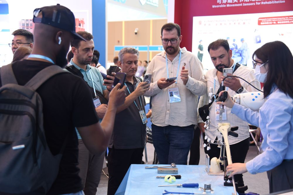 “不可思議!這個(gè)機(jī)械臂竟然能如此精準(zhǔn)地輔助醫(yī)生完成膝關(guān)節(jié)置換手術(shù)?!鄙钲谠悄苷刮坏腻K铻?全骨科手術(shù)機(jī)器人吸引了不少外商圍觀,一位來(lái)自中東的醫(yī)療設(shè)備代理商在觀看完現(xiàn)場(chǎng)演示后發(fā)出感嘆。