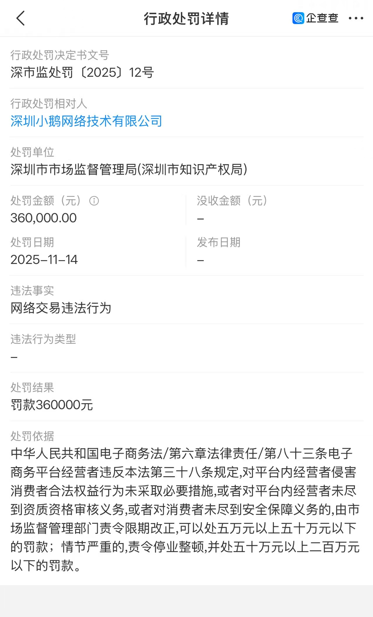 正當深圳小鵝網(wǎng)絡技術(shù)有限公司(以下簡稱“小鵝通”)向港股IPO發(fā)起沖刺之際,一紙來自深圳市市場監(jiān)管局的36萬元罰單,將其長期存在的平臺治理問題推至臺前。此次處罰雖金額不高,卻像一束探照燈,照亮了這家“私域運營龍頭”在高速增長背后所依賴的風險商業(yè)模式與潛在的合規(guī)陷阱,為投資者敲響了警鐘。