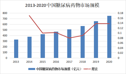 2013-2020中國(guó)糖尿病藥物市場(chǎng)規(guī)模