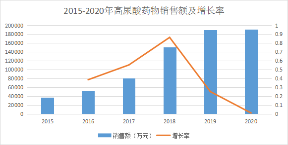 2015-2020年高尿酸藥物銷售額及增長(zhǎng)率