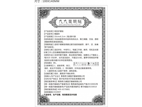 九九目明貼相關(guān)產(chǎn)品注冊