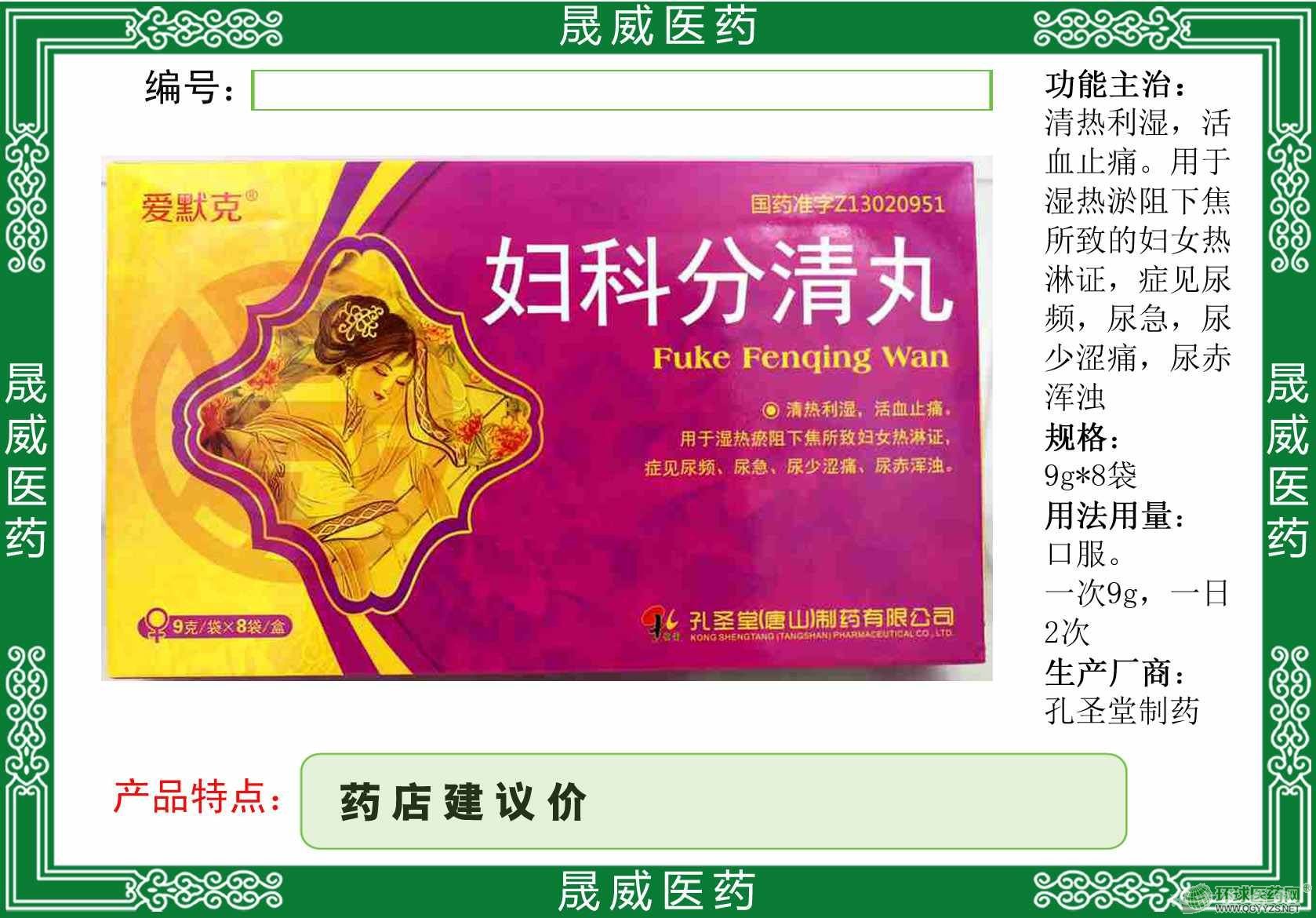 婦科分清丸相關產品注冊