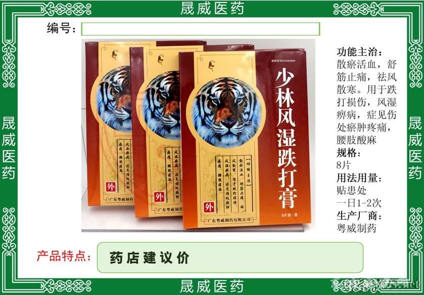 少林風濕跌打膏相關(guān)產(chǎn)品注冊