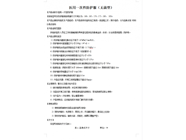 一次性醫(yī)用防護服