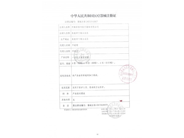 一次性無菌口罩帽相關(guān)產(chǎn)品注冊(cè)