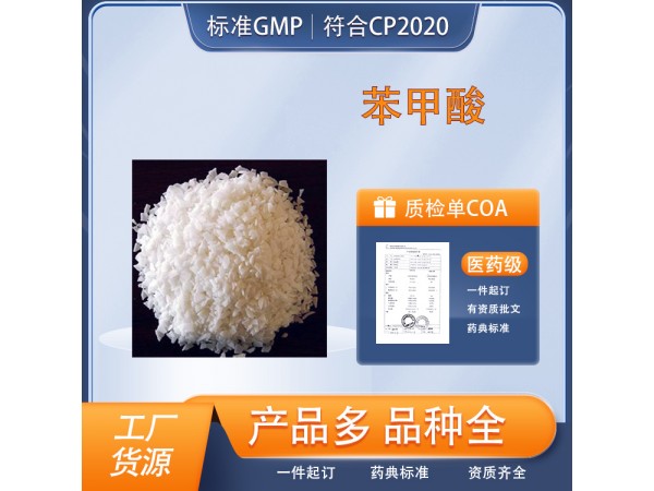 醫(yī)藥用級(jí)苯甲酸原料CP20藥典標(biāo)準(zhǔn)CDE備案相關(guān)產(chǎn)品注冊(cè)