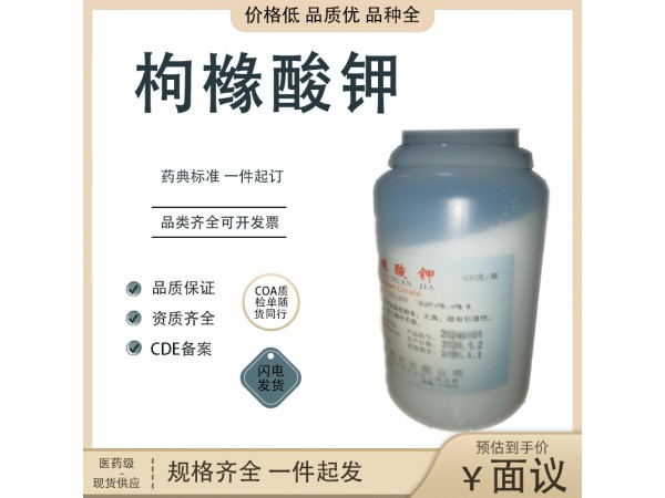 藥用級(jí)枸櫞酸鉀原料醫(yī)用級(jí) 500g/瓶 輔料 COA質(zhì)檢隨貨同行相關(guān)產(chǎn)品注冊(cè)